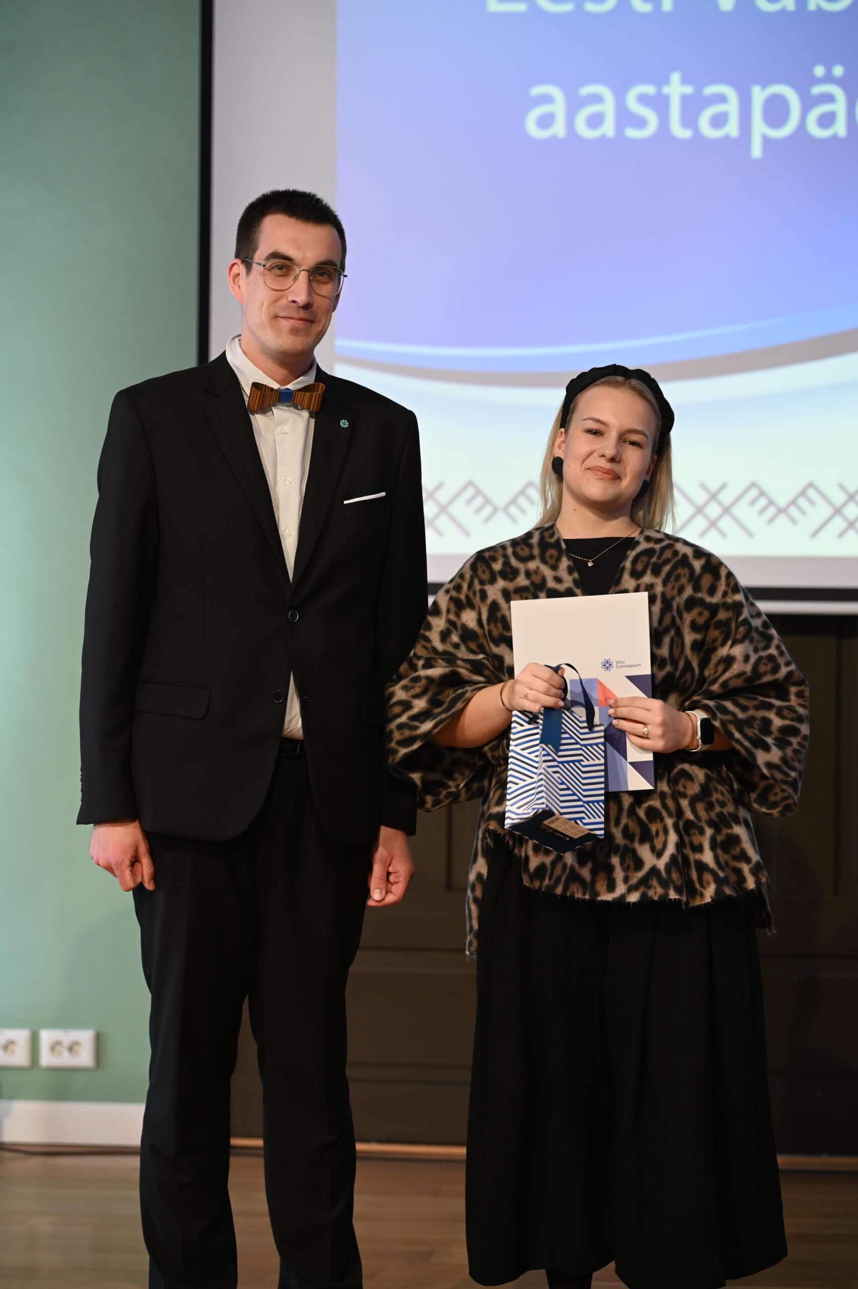 Aktusel andis koolidirektor üle Võru Gümnaasiumi põhiväärtuste kandja tiitli. Põhiväärtuse kandja tiitli sai sellel aastal G3C õpilane Agnes Laugamets. Võru Gümnaasium annab üle vabariigi aastapäeva aktusel kooli põhiväärtuste kandja tiitli õpilasele, kellel on väärtustena olulisel kohal ka kooli jaoks olulised väärtused. Need on ettevõtlikkus, pingutust, areng ja isamaalisus. Põhiväärtuste kandja tiitli saanud Agnes on noor, kes on osavõtlik, isamaaline ja hooliv. Tal on lihtsalt väga hea süda. Ta on hea mõttekaaslane, kes ei jäta oma asjakohast arvamust välja ütlemata, aga on valmis võtma ka vastutust, kui seda on tarvis. Oma positiivse ellusuhtumise ja särasilmsusega motiveerib ta kaasõpilasi. Ta esindab kooli erinevates võistlustes ja tema õpilasfirma paistis eelmisel aastal silma. Ta on noor, kes kannab Võru Gümnaasiumi väärtusi ja on eeskujuks teistele.